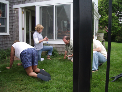[searching for broken wine glass]